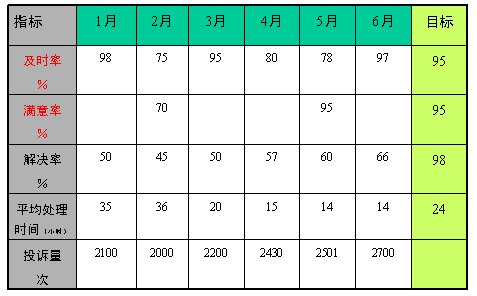 及時(shí)率:雖然在6月達(dá)到了97%,高于目標(biāo)值95%,但從1-6月份波動(dòng)的情況來看,其表現(xiàn)為大幅波動(dòng),我們認(rèn)為此指標(biāo)處理失控狀態(tài),是沒有管理的或管理是無效的,必須加強(qiáng)管理;