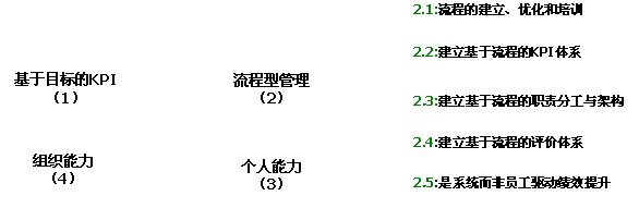 因此,要有效實(shí)施“流程型”管理,必須在我們?nèi)粘9芾淼膬?nèi)容、KPI體系、組織架構(gòu)、績(jī)效評(píng)價(jià)體系和組織發(fā)展的驅(qū)動(dòng)力五個(gè)方法實(shí)施同步的轉(zhuǎn)變,才能有效建立流程文化,保證整個(gè)組織對(duì)流程的理解和重視,提高組織的執(zhí)行能力,通過“組織能力”保證組織目標(biāo)的實(shí)現(xiàn),而非依賴個(gè)體能力。