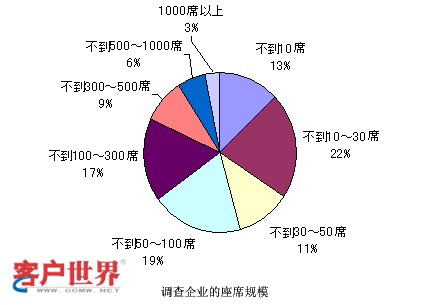 那么和剛才雜志社調(diào)查的結(jié)果是一樣的。這個數(shù)字又是政府方面調(diào)查的結(jié)果,他們調(diào)查的很細,對很小規(guī)模的,比如說1-4人的呼叫中心都進行了調(diào)查,并且看到這種小規(guī)模的呼叫中心還占有很大的比例。可以看到,10人以下的呼叫中心可能在這個結(jié)果里面占了基本上高于50%,所以可能得到一個結(jié)論,就是在日本小型的呼叫中心非常多。