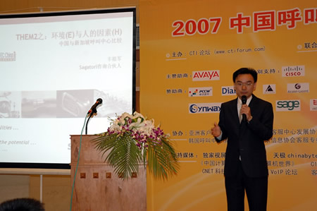 2007年4月18日至20日,2007中國(guó)呼叫中心及企業(yè)通信大會(huì)在上海光大會(huì)展中心國(guó)際大酒店隆重召開(kāi),以下是專題演講實(shí)錄:主持人(李京成):各位早上好,大會(huì)的第三天了,時(shí)間像飛一樣的快,今天很多朋友都帶著行李來(lái)的,結(jié)束就準(zhǔn)備回家了。今天仍然有兩個(gè)分論壇在這個(gè)分論壇主題是呼叫中心在海外,另外一個(gè)分論壇在十號(hào)廳,都有非常優(yōu)秀的專家給大家提供精彩的演講。今天我們第一位給大家演講的大家并不陌生,我們的老朋友豐祖軍先生,有請(qǐng)豐祖軍先生。豐祖軍先生是在國(guó)內(nèi)是一個(gè)非常資深的呼叫中心運(yùn)營(yíng)管理專家,我們經(jīng)常在一起合作。在此他演講之前,要做好思想準(zhǔn)備跟上他的跳躍思維,不然會(huì)落后,他的思維非常快,表達(dá)也非常快,他演講的題目是環(huán)境與人的因素-中國(guó)與新加坡呼叫中心的比較,下面把時(shí)間交給豐祖軍先生。