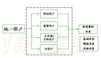 由于目前我國(guó)的信用體系尚不完善,所以,電信企業(yè)自身需要首先完善企業(yè)級(jí)的客戶(hù)信用體系,而設(shè)立統(tǒng)一實(shí)名制賬戶(hù)是完善客戶(hù)信用體系的有效途徑。首先,建立實(shí)名制賬戶(hù)便于固網(wǎng)運(yùn)營(yíng)商構(gòu)建相對(duì)完整、準(zhǔn)確的客戶(hù)信息資料庫(kù)。其次,通過(guò)建立統(tǒng)一賬戶(hù),可以將目前彼此孤立的固定電話、小靈通、寬帶、未來(lái)的手機(jī)業(yè)務(wù)及增值業(yè)務(wù)等各子消費(fèi)賬戶(hù)相關(guān)聯(lián),從而方便運(yùn)營(yíng)商建立客戶(hù)業(yè)務(wù)記錄,以及對(duì)多消費(fèi)賬戶(hù)進(jìn)行統(tǒng)一的信用管理。第三,運(yùn)營(yíng)商可以針對(duì)統(tǒng)一賬戶(hù)的消費(fèi)總額提供積分獎(jiǎng)勵(lì),增加用戶(hù)黏度。統(tǒng)一賬戶(hù)與各消費(fèi)賬戶(hù)的關(guān)聯(lián)關(guān)系如圖4所示。