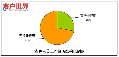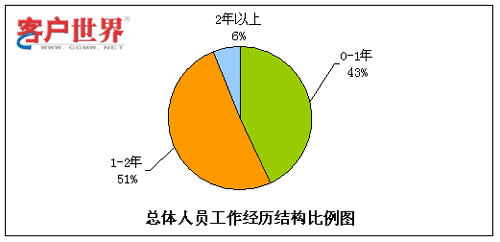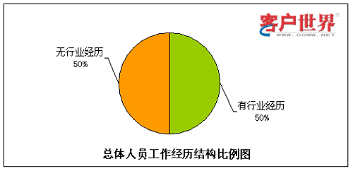 呼叫中心由于高壓力、24小時輪班等工作特性,有相當比例的流失是因為不適應工作環(huán)境而導致的,其中一個主要原因就是新入職員工想象中的工作環(huán)境和現(xiàn)實情況大相徑庭。而有呼叫中心工作經驗的員工對于這點的適應性相對較強,因此我們對呼叫中心員工是否有行業(yè)經歷方面的情況進行了統(tǒng)計分析。
