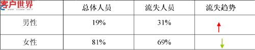 把二組數(shù)據(jù)放在一起比較后我們得出以下結論:男性座席比女性座席更容易流失,這是因為呼入型的呼叫中心對座席人員的耐性和承受能力要求較高,相對而言,男性座席對這方面的適應性較差。
