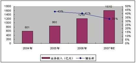 賽迪顧問預(yù)測2007年底,我國增值電信業(yè)務(wù)市場收入有望超過1600億元,增速高達(dá)33%,移動(dòng)增值業(yè)務(wù)收入規(guī)模將達(dá)980億元左右,占比高達(dá)61.25%。2007年增值電信業(yè)務(wù)經(jīng)營企業(yè)的數(shù)量將會(huì)出現(xiàn)負(fù)增長,量的下降帶來質(zhì)的提升,表明增值電信業(yè)市場已經(jīng)趨于良性發(fā)展。