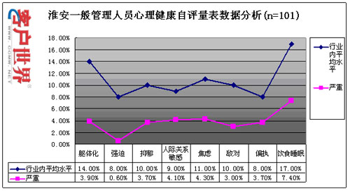目前,員工壓力和心理健康情況已成為困擾整個行業(yè)的主要問題之一,我們通過專業(yè)方法對淮安中心的員工心理健康和壓力狀況進行了科學的測量,以了解該中心員工的壓力和心理健康狀況,具體測量數據如下: