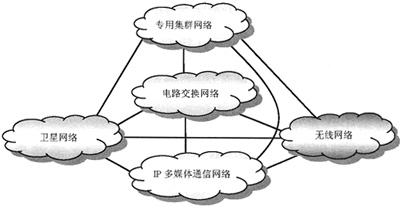 作為一個國家的公眾通信網絡,它是由多種不同性質的互聯(lián)互通的電信網絡組成,它們基于不同的技術(例如電路交換、無線、IP和ATM)和架構,支持不同的協(xié)議和業(yè)務。不同的網絡類型包括電路交換網絡、衛(wèi)星網絡、無線網絡、專用集群網絡、IP多媒體通信網絡(見圖1)。目前,國內一些大城市自建的數字集群政務專網可以作為應急通信的指揮平臺,它和公網應該是互相補充的關系。廣播網絡也是公眾通信網的補充,主要用于警示、公告信息的發(fā)布。