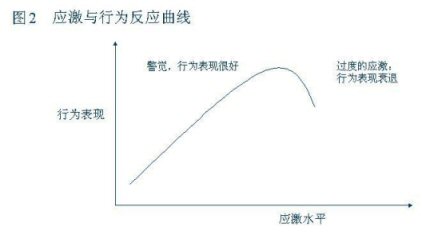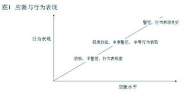 當應激水平處于一個較低的指標時人在心理上處于一個放松、不警覺的狀態(tài),從而關(guān)聯(lián)的行為表現(xiàn)就比較差但隨著應激水平的加大,相關(guān)聯(lián)的形為表現(xiàn)就會從中等向表現(xiàn)良好過渡。