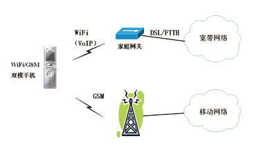 WiFi/GSM雙模手機既可以接入無線局域網WLAN,實現VoIP(VoiceoverIP)功能,又可以接入蜂窩網,實現移動通信功能。但傳統(tǒng)的WiFi/GSM雙模手機在進行WiFi網絡和GSM網絡之間的切換時,無法實現無縫切換,用戶體驗比較差,因此前幾年這種雙模終端發(fā)展得并不理想。