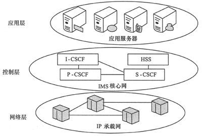 隨著通信技術(shù)不斷發(fā)展,通信網(wǎng)絡(luò)寬帶化成為一個(gè)明顯的發(fā)展趨勢(shì)。為了適應(yīng)這個(gè)發(fā)展趨勢(shì),向用戶提供更加豐富的移動(dòng)業(yè)務(wù)。3G移動(dòng)通信標(biāo)準(zhǔn)組織(3GPP)在R5版本中提出了IP多媒體子系統(tǒng)(IMS)的技術(shù)架構(gòu)[1],其核心思想是在3G網(wǎng)絡(luò)中引入支持IP多媒體業(yè)務(wù)的子系統(tǒng)。IMS的技術(shù)特點(diǎn)在協(xié)議層面上來說。就是控制和應(yīng)用分離,如圖1所示?刂茖硬捎脮(huì)話初始化協(xié)議(SIP),應(yīng)用層支持各類IP以上的應(yīng)用層協(xié)議,如RTP、FTP、SMTP等。在網(wǎng)絡(luò)層面上來說,IMS采用承載網(wǎng)和控制網(wǎng)分離的原則。由于上述技術(shù)特點(diǎn),在IMS網(wǎng)絡(luò)上推出多媒體業(yè)務(wù)比3G