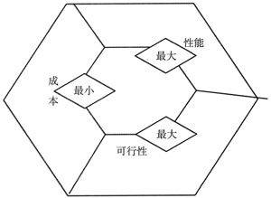一個最優(yōu)的網(wǎng)絡(luò)具有的特性是:具有最好的性能,可以具體的施行并且成本盡可能的小,如圖3所示。