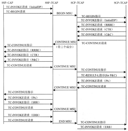 移動智能網(wǎng)應用部分(CAP)是遠程操作服務單元(ROSE),ROSE規(guī)程包括在TCAP成份子層中,并作為單位數(shù)據(jù)(UDT)放在SCCP中傳送。我國CAP是建立在以TCAP和SCCP為基礎的No.7信令網(wǎng)傳送的,CAP受限于SSP-SCP、SCP-IP之間的接口規(guī)范。