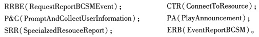 從分布功能平面觀察,每個業(yè)務分支對應了一段CAP消息流。預付費用戶查詢業(yè)務流程是移動智能網(wǎng)中比較典型的一個業(yè)務,300業(yè)務的主要流程是:用戶撥接入碼,撥語言位,選擇流程,報余額,通話結束掛機等。CAP的消息流引起自動機的狀態(tài)轉移從而觸發(fā)下列消息事件,為簡單起見,我們在圖例中使用消息的縮寫,具體消息縮寫如下: