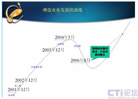 我以增值業(yè)務(wù)為例,講講如何做好過冬的準(zhǔn)備。首先過冬需要有‘糧’,而‘糧’的大部分是生意好時(shí)留下來的,還有在困難時(shí)候有新的經(jīng)濟(jì)來源,而新的經(jīng)濟(jì)來源也是要培育期的。最好的辦法是在生意紅火時(shí),根據(jù)對市場的判斷,進(jìn)行前期的準(zhǔn)備與技術(shù)的開發(fā)。在2003年增值業(yè)務(wù)進(jìn)入快速增長期時(shí),我就開始考慮下一步發(fā)何走。