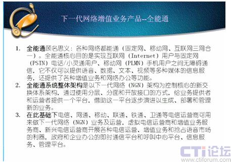 何謂CTI?有許多人都是非常片面的理解,在呼叫中心市場把CTI行業(yè)帶到最紅火的第二次高潮時(shí)許多人都以為CTI就是呼叫中心、呼叫中心就是CTI;2002年當(dāng)呼叫中心市場開始出現(xiàn)萎縮時(shí),許多大公司紛紛把CTI裁剪,還有許多公司倒閉時(shí),剩下的公司日子很難過時(shí),許多人認(rèn)為CTI完了、紛紛轉(zhuǎn)行。我在2003年1月6日‘中國計(jì)算機(jī)報(bào)社舉辦了2003年CTI和呼叫中心研討會’時(shí)講過:呼叫中心市場很冷,但CTI市場不冷,CTI行業(yè)又要開復(fù)蘇,因?yàn)槲彝ㄟ^一年多的增值業(yè)務(wù)的摸索,認(rèn)為增值業(yè)務(wù)將重新帶動(dòng)CTI行業(yè)第三次高潮,關(guān)鍵在于增值業(yè)務(wù)的創(chuàng)新應(yīng)用。隨后的幾年里增值業(yè)務(wù)把CTI行業(yè)帶到一個(gè)新的高度,許多人又認(rèn)為CTI就是IVR,就是增值業(yè)務(wù);但到了07年增值業(yè)務(wù)市場嚴(yán)重萎縮,大家又以為CTI不行了、紛紛轉(zhuǎn)行和離開。