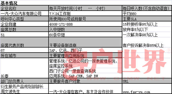 一汽-大眾汽車有限公司呼叫中心成立于1999年初,經(jīng)過九年Call Center 一路走來,有花有果,有香有澀,有酸有甜,有喜有淚,將主動營銷和主動服務意識深深感動著每一位客戶。