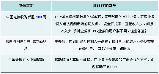 1)電信重組對(duì)IPTV的影響