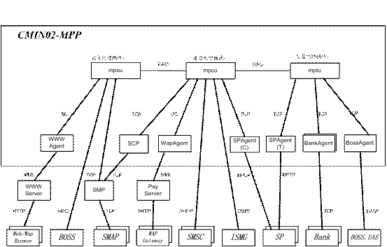 Provider)的交易請求,根據(jù)用戶的賬戶設(shè)置情況,與本地?cái)?shù)據(jù)庫(或銀行、或BOSS系統(tǒng))交互,完成對用戶支付賬戶的扣費(fèi)操作;業(yè)務(wù)受理部分MPSU:完成業(yè)務(wù)受理的功能,處理管理員、營業(yè)廳操作員、或用戶的業(yè)務(wù)管理請求,進(jìn)行相應(yīng)查詢、配置或計(jì)算,并返回結(jié)果;代理部分Agent,例如:WWWAgent,BankAgent等負(fù)責(zé)與各個外部實(shí)體的通信;另外,系統(tǒng)還應(yīng)有輔助模塊用來完成系統(tǒng)各進(jìn)程的守護(hù)、監(jiān)視、控制、以及系統(tǒng)性能數(shù)據(jù)的采集功能。