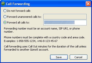 如果你不想用Gizmo5這個客戶端的話,點擊Edit->Call Forwarding,選擇Forward all calls to,并填寫sip:username@gmail.com,之后所有撥打Google