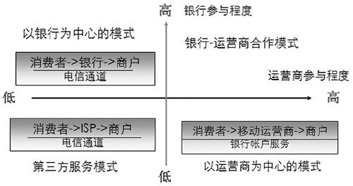 系統(tǒng),通過定制終端,電信運營商可以將各種先進的移動應用提供給用戶,使用戶獲得良好的移動化生活體驗。因此,電信運營商在移動支付方面具有較好的用戶資源和營銷渠道。可見,電信運營商和銀行的協(xié)作程度在很大程度上決定了移動支付商業(yè)模式的績效水平。