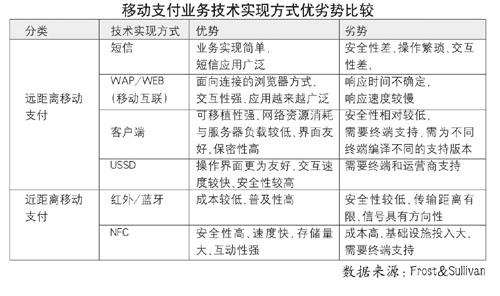 各種移動支付技術(shù)方式比較