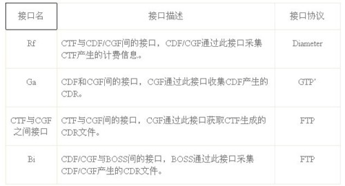 表1:IMS離線計費相關接口說明