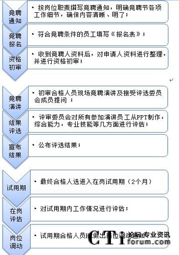 如何進行內部選拔 為營造公開、公平、公正的內部人才選拔環(huán)境,使符合條件的員工均有參與的機會和權利,內部選拔人才一般采用競聘模式。下圖為參考流程:
