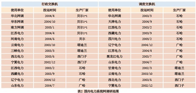 通過(guò)對(duì)目前國(guó)內(nèi)電力系統(tǒng)網(wǎng)省一級(jí)的用戶使用交換機(jī)設(shè)備品牌進(jìn)行電話調(diào)研統(tǒng)計(jì),從整體上更能體現(xiàn)交換設(shè)備技術(shù)發(fā)展走向,為軟交換應(yīng)用的可行性評(píng)估提供可靠的數(shù)據(jù)。表2為重點(diǎn)調(diào)研的匯總結(jié)果。