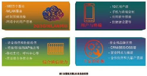 運營商的資金雄厚,品牌顯著,CRM/BSS/OSS等運營支撐系統(tǒng)蘊含豐富的用戶信息,營業(yè)網(wǎng)點密布,合作伙伴眾多,大客戶資源豐富,這些都為開展LBS業(yè)務提供了良好的資源。
