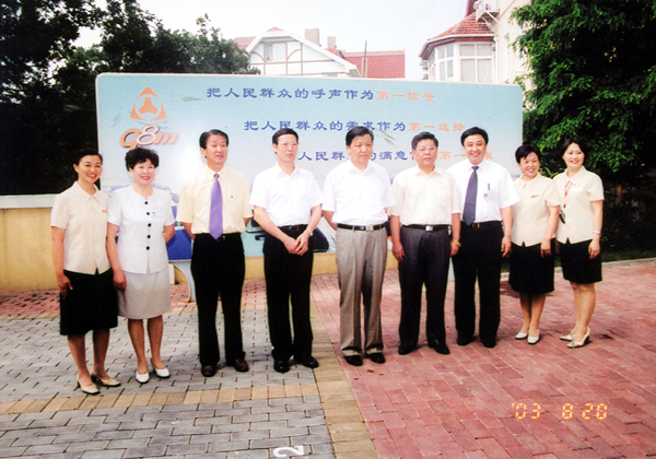 二〇〇三年八月二十日 中共中央政治局委員、書記處書記、中宣部部長劉云山、副部長胡振民在山東省委書記張高麗、省委常委、青島市委書記杜世成等領(lǐng)導(dǎo)陪同下視察96111熱線。