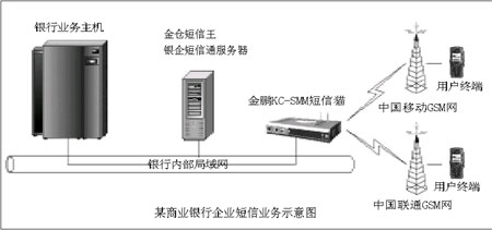 2004年7月,某地級(jí)市商業(yè)銀行采用了金鵬KC-SMM短信貓和“金倉(cāng)短信王銀企短信通解決方案”軟件搭建了企業(yè)級(jí)的短信服務(wù)體系。鑒于業(yè)務(wù)量并非很大,所以盡管整個(gè)商業(yè)銀行有近三百個(gè)辦公網(wǎng)點(diǎn),在設(shè)備上該商業(yè)銀行仍然只采用一套軟硬產(chǎn)品!敖瘗i的短信平臺(tái)產(chǎn)品目前在北方鋪開(kāi)的時(shí)間并不長(zhǎng),所以在價(jià)格上有一定的傾斜,我們商業(yè)銀行購(gòu)買的產(chǎn)品,價(jià)格比較便宜!痹撋虡I(yè)銀行信息部某負(fù)責(zé)人說(shuō)。