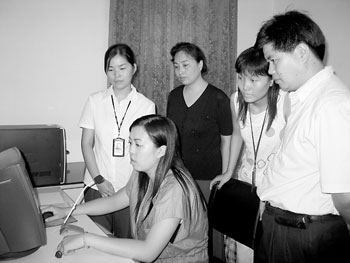 圖為南京電信增值業(yè)務(wù)部的同志到高淳縣供電局教用戶(hù)使用錄制軟件的情景。