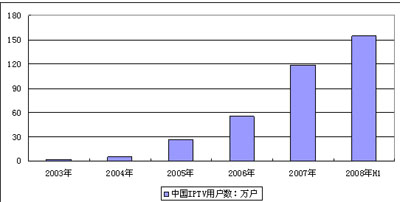 圖 1 2003-2008年上半年中國IPTV用戶數(shù)