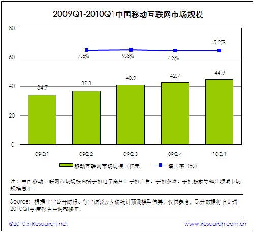 2010第一季度中國移動(dòng)互聯(lián)網(wǎng)市場規(guī)模穩(wěn)步增長