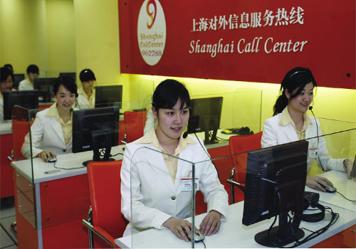 東方網(wǎng)5月1日消息:據(jù)《勞動(dòng)報(bào)》報(bào)道,“Hello。ㄓ⒄Z:你好)”、“GutenTag(德語:你好)!”、“Bonjour(法語:你好)!”……這里就像個(gè)小小的聯(lián)合國,可以聽到15種語言;這里又像“女兒國”,接聽電話的都是80后的姑娘;這里就是上海對(duì)外信息服務(wù)熱線962288,365天、24小時(shí)接聽外籍人士的問詢電話。
