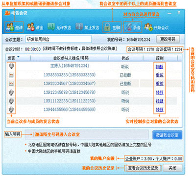 特別是其高清語音/電話會(huì)議功能,竟然具備了CD級(jí)水晶音質(zhì),只需撥打?qū)Ψ椒謾C(jī)號(hào)碼(Simba企業(yè)分機(jī))即可找到分布在全國(guó)各地的同事,天涯也在咫尺;并且安全、免費(fèi);而且企業(yè)無需任何設(shè)備投入,無需向運(yùn)營(yíng)商申請(qǐng),即開即用。通過Simba客戶端發(fā)起:無需繁瑣的電話按鍵操作,輕松邀請(qǐng)對(duì)方加入會(huì)議;可設(shè)立會(huì)議密談室,秘密話題會(huì)議中其他成員無法聽到;也可主持會(huì)議,隨時(shí)邀請(qǐng)成員,隨時(shí)將某成員請(qǐng)出會(huì)議室。