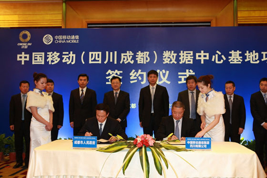 2012年2月22日,中國移動(四川成都)數(shù)據(jù)中心基地項目在四川成都正式簽約啟動。成都市政府葛紅林市長、劉超常委、白剛副市長與中國移動通信集團(tuán)公司魯向東副總裁、中國移動四川公司簡勤總經(jīng)理等出席簽約儀式,成都市政府與中國移動四川公司代表雙方簽署合作協(xié)議。