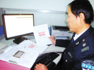 圖為:執(zhí)法人員核對(duì)違章號(hào)碼。