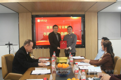 (圖:聚橋文創(chuàng)總經(jīng)理鄒橋華向廣東省傳統(tǒng)文化促進(jìn)會(huì)會(huì)長(zhǎng)李世玉頒發(fā)顧問(wèn)聘書(shū))