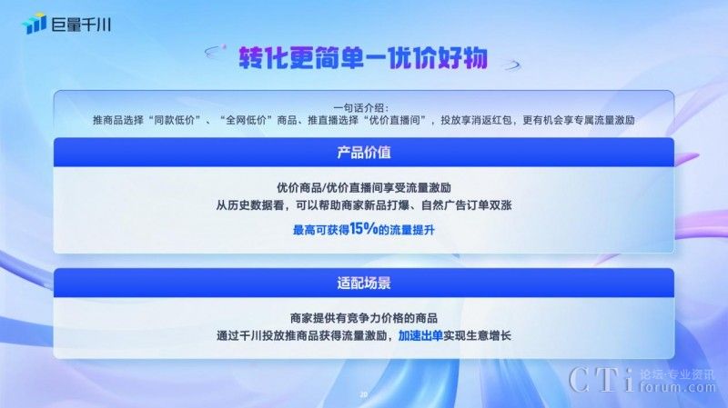 五、「優(yōu)價貨品玩法 」:優(yōu)價貨品商家也可以參與優(yōu)價品消耗排位賽和智能優(yōu)惠券活動玩法。平臺推出優(yōu)價推商品和優(yōu)價直播間巔峰排位賽,商家累計最高可享25萬消返紅包。對于使用智能優(yōu)惠券投放的商家,現(xiàn)金增量消耗達標可獲得最高10000元的消返紅包獎勵。