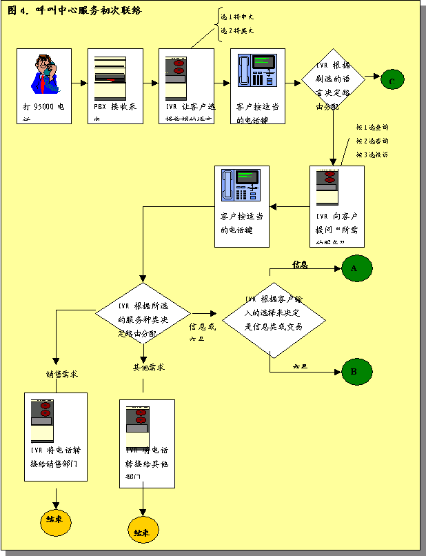 呼叫中心設(shè)計(jì)包括呼叫處理過(guò)程,設(shè)計(jì)呼叫處理過(guò)程之后,客戶(hù)經(jīng)過(guò)初次聯(lián)絡(luò)過(guò)程之后,可以采取一或兩種途徑得到呼叫中心服務(wù):