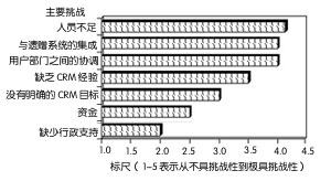 圖2 IT部門人員實(shí)施CRM戰(zhàn)略時(shí)面臨的主要挑戰(zhàn)