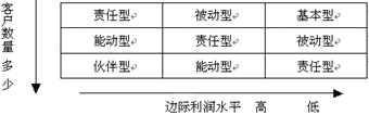 需要指出的是這5種程度的客戶關(guān)系類型并不是一個簡單的從優(yōu)到劣的順序,企業(yè)所能采用的客戶關(guān)系的類型一般是由它的產(chǎn)品以及客戶決定的, 比如寶潔公司它的洗發(fā)水、洗衣粉的客戶之間是一種被動性的關(guān)系:寶潔設(shè)立客戶抱怨處理機(jī)構(gòu),處理客戶投訴,改進(jìn)產(chǎn)品;但是寶潔和沃爾瑪特之間卻可以建立互惠互利的伙伴性關(guān)系?铺乩崭鶕(jù)企業(yè)的客戶數(shù)量以及企業(yè)產(chǎn)品的邊際利潤水平提供了一個表格幫助企業(yè)選擇自己和是的客戶關(guān)系類型。