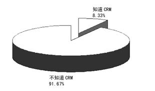 本次問卷調(diào)查共有2461個有效樣本,其中知道CRM的有220份,占8.33%,不知道的有2421份,占91.67%。這說明,從國外引入到現(xiàn)在,CRM在我國還遠(yuǎn)未普及。