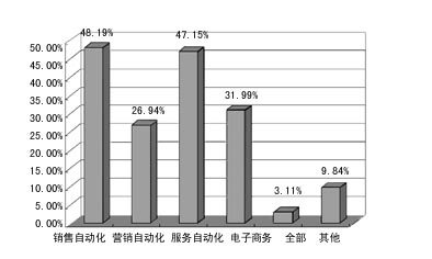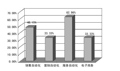 在已實施CRM企業(yè)的情況中,實施模塊最多的是服務(wù)自動化,其次是銷售自動化;但那些沒用CRM的企業(yè),準(zhǔn)備先上銷售自動化模塊的企業(yè)最多,而服務(wù)自動化其次。對于CRM軟件市場來說,銷售自動化和服務(wù)自動化仍是主流。