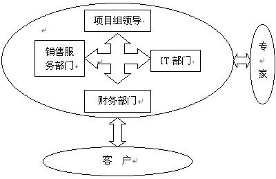 CRM項目小組由公司內部各部門及外部人員共同組成。一般來講,項目小組應該包括高層領導(一般為副總)、銷售和營銷部門的人員、IT部門的人員、財務人員,還要包括所有最終用戶的代言人。他們作為CRM系統(tǒng)實施的輸入部分。