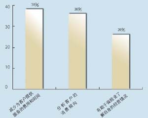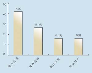 關于所應用的CRM類型,有5家是呼叫中心,5家是分析型,7家是運營型,2家是屬于大型企業(yè)CRM。其中13家擁有動態(tài)客戶數據庫,占到68.4%。這其中又有42%利用數據庫作客戶記錄,26.3%作為客戶支持使用,15.7%用作統(tǒng)計分析,另有16%作為市場推廣。保險公司與客戶聯(lián)系的方式,從重要性來看依次為:面對面\電話\網絡\傳真,這說明保險公司對于與客戶進行人性化交流的重視。在問到CRM的主要作用時,有5家表示使用CRM有助于保險業(yè)了解自身的經營情況,幫助公司準確地發(fā)現贏利客戶和具有贏利潛力的客戶,有7家認為使用CRM有助于分析客戶的消費傾向,有7家認為使用CRM有助于優(yōu)化信息和資源管理。在問到是否愿意為像CRM系統(tǒng)這樣的咨詢或服務付費時,有11家表示愿意,占到57.8%。