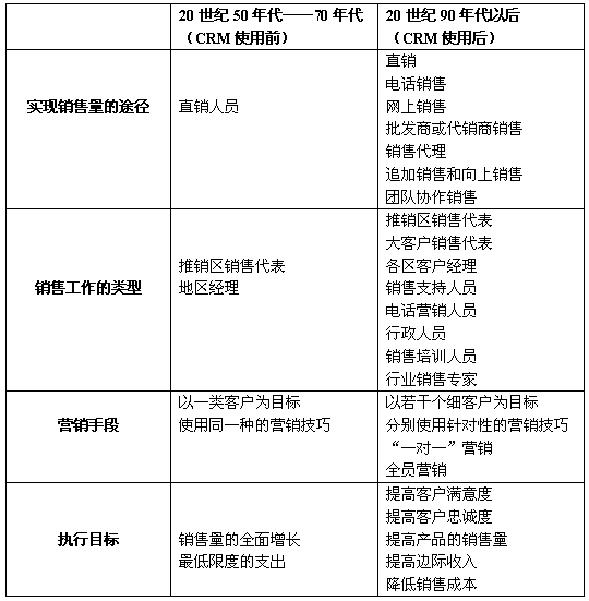 CRM將引起銷售管理的變革,CRM中的銷售自動化(SFA)直接加速了這種變革的產(chǎn)生;而且CRM還有利于提升整個銷售團隊的業(yè)績,并且使得全員銷售成為可能。