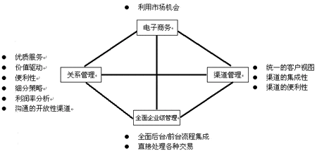 本文中,將針對(duì)國(guó)外金融企業(yè)對(duì)CRM的看法,提出一種全面的對(duì)CRM的看法,我們將從四個(gè)角度來(lái)描述,它們分別是電子商務(wù)(E-business)、渠道管理(Channel management)、關(guān)系管理(Relationships)、全面企業(yè)級(jí)管理(Management of the total enterprise),取第一個(gè)字母組合為ECRM。
