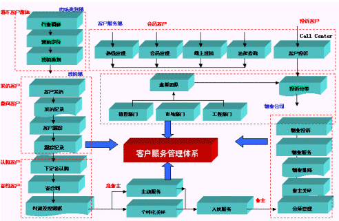 稱之為"體系"主要體現(xiàn)在以下方面:跨越和涉及房地產(chǎn)售前、售中、售后完整階段的各個部門