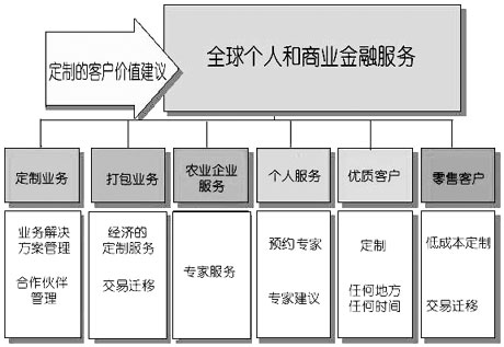 客戶細(xì)分方案 澳大利亞國民銀行定義了六個等級的客戶群,提供著不同程度的服務(wù), 創(chuàng)建這些客戶等級的目的是讓銀行更容易地對客戶進(jìn)行定義(如圖2所示)。